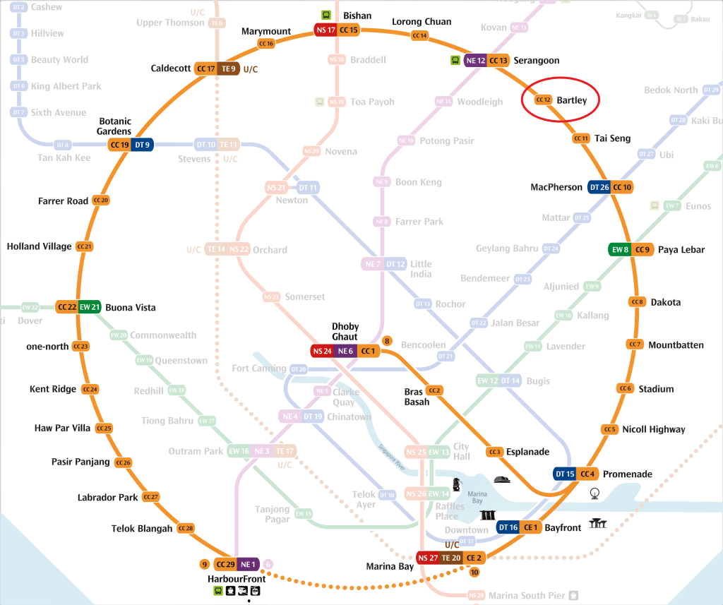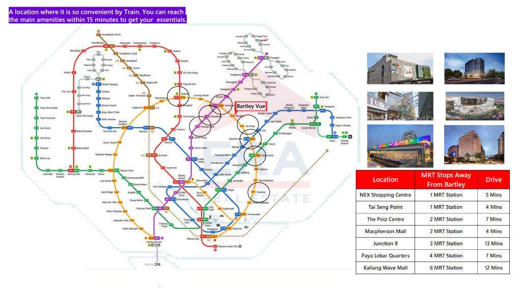 Bartley MRT is located on the circle line one stop away from NEX shopping center (Serangoon MRT) where a plethora of shopping and dining await. Situated on the circle line, Bartley MRT is very convenient offering access to all other current and future MRT Lines.